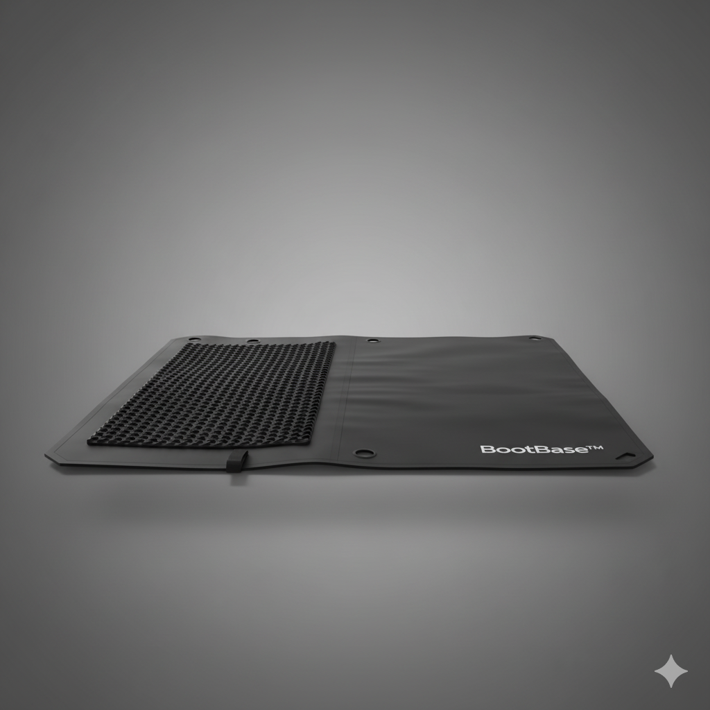 Most people throw down a scrap of carpet or an old beach towel. That works — until it’s soaked, frozen, or caked with mud. The BootBase is purpose-built for the outdoors, with waterproof materials, a stable surface, and pack-away design that keeps your vehicle clean after use.